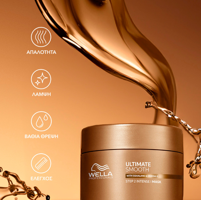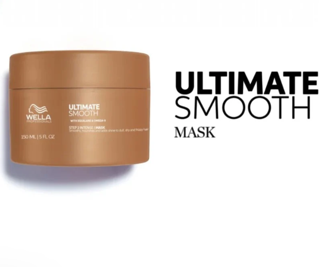 Η θρεπτική μάσκα μαλλιών Wella Professionals Ultimate Smooth Mask παρέχει εντατική φροντίδα για τα μαλλιά σας εκ των έξω και εκ των έσω. Σε μόλις 10 λεπτά, ο συνδυασμός σκουαλάνης και ωμέγα-9 λιπαρών οξέων μεταμορφώνει τα μαλλιά σας σε ένα απαλό πέπλο γεμάτο λάμψη. Τα μαλλιά σας θα είναι απόλυτα απαλά, χωρίς ίχνος ατίθασου φριζαρίσματος, και θα γίνουν σήμα κατατεθέν ομορφιάς που δεν θα μείνει απαρατήρητο.