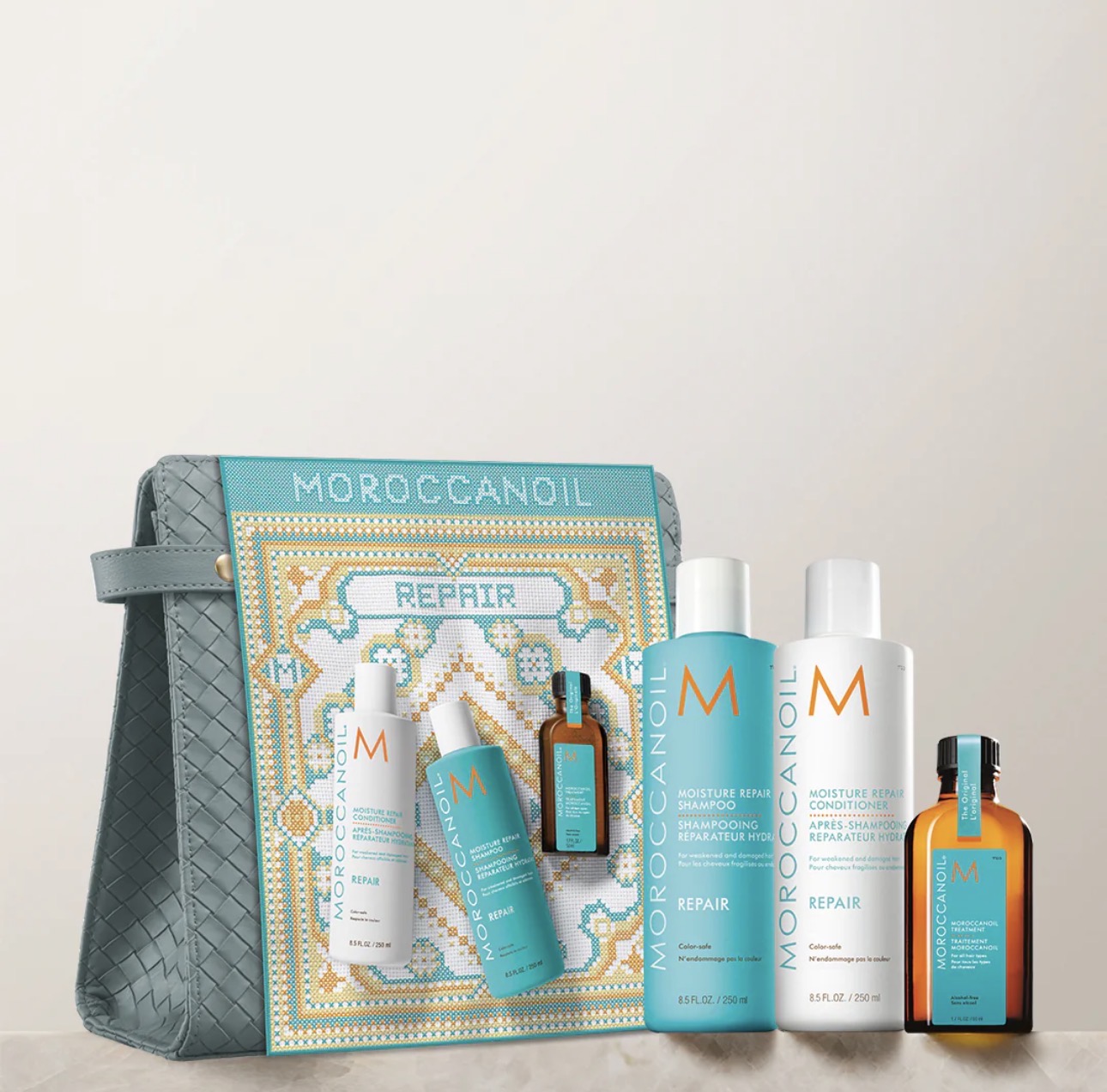 Αυτό το κομψό και ανθεκτικό νεσεσέρ περιέχει μια συλλεκτική σειρά προϊόντων πλήρους μεγέθους για εντατική ενυδάτωση. Με το χαρακτηριστικό άρωμα της Moroccanoil και εμπλουτισμένα με κερατίνη για ενίσχυση της λάμψης, καθώς και αμινοξέα μεταξιού που προσφέρουν βαθιά ενυδάτωση στην τρίχα, φτάνοντας έως και στο εσωτερικό της επιδερμίδας των μαλλιών.